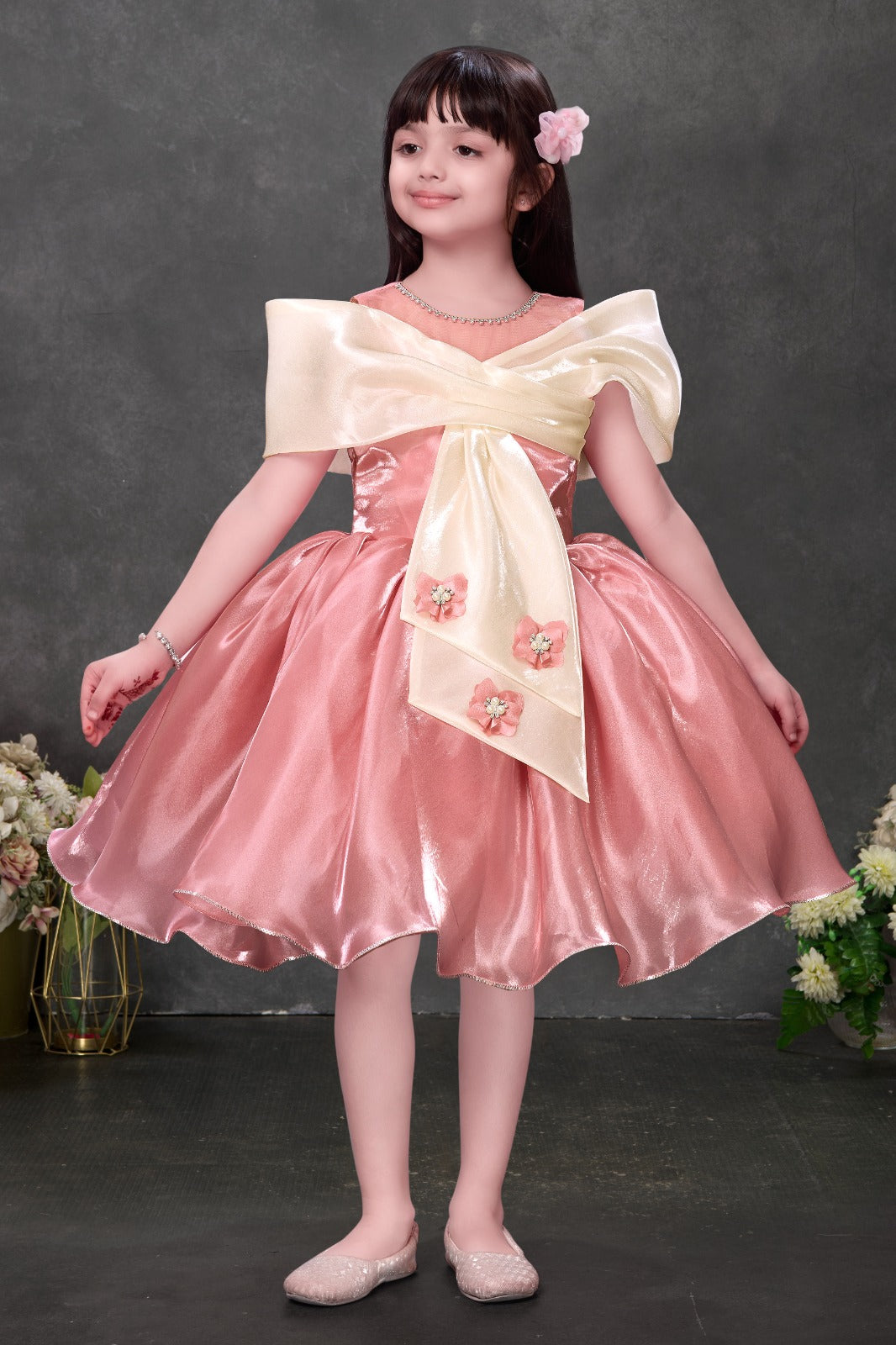 Peach Shimmer Party Wear Dress for Girls | Luxury Kids Dress