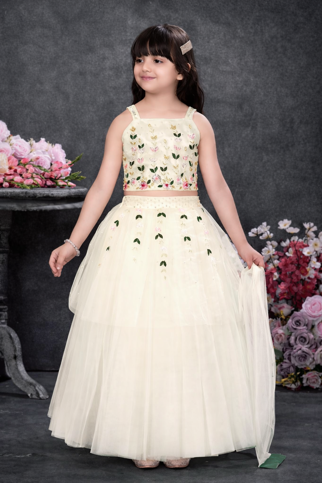 Pastel Garden Embroidered Lehenga Set for Girls with Tulle Skirt & Dupatta-Birthday dress for girls