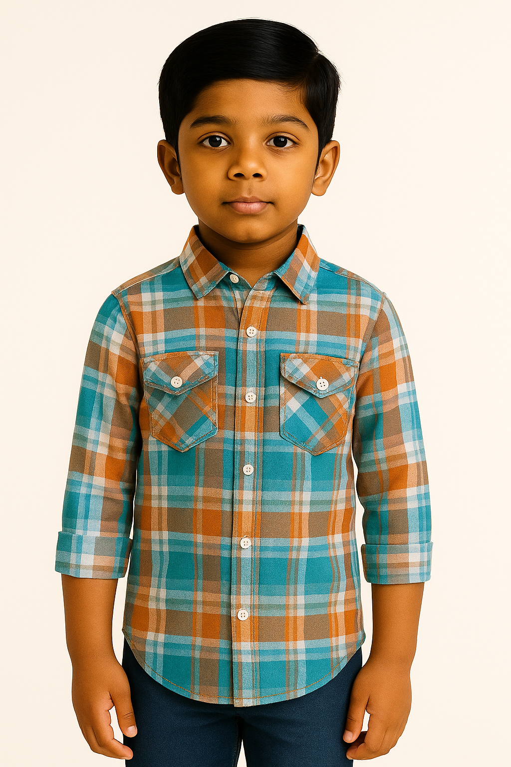 Boys Teal & Brown Premium Checkered Casual Shirt