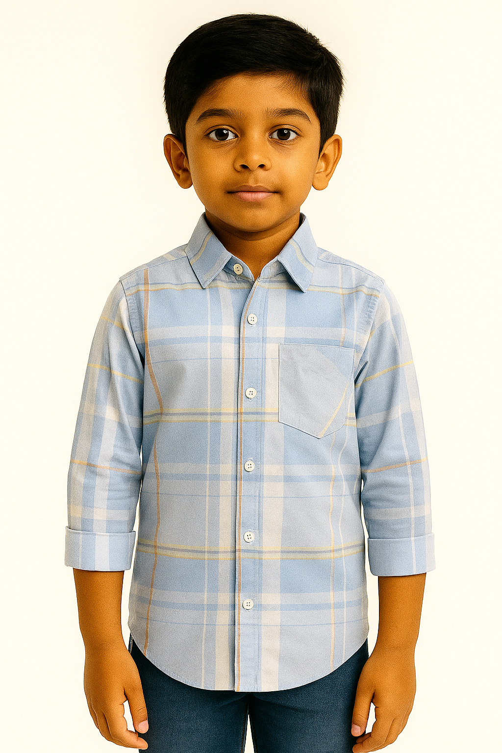 Light Blue & Yellow Checkered Full Sleeve Shirt for Boys