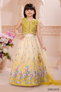 Mustard Yellow Embroidered Crop Top and Floral Print Lehenga Set