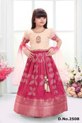 Brocade pink lehenga with zari floral motifs and border