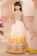 Yellow and Cream Floral Printed Gown with Embroidered Bodice